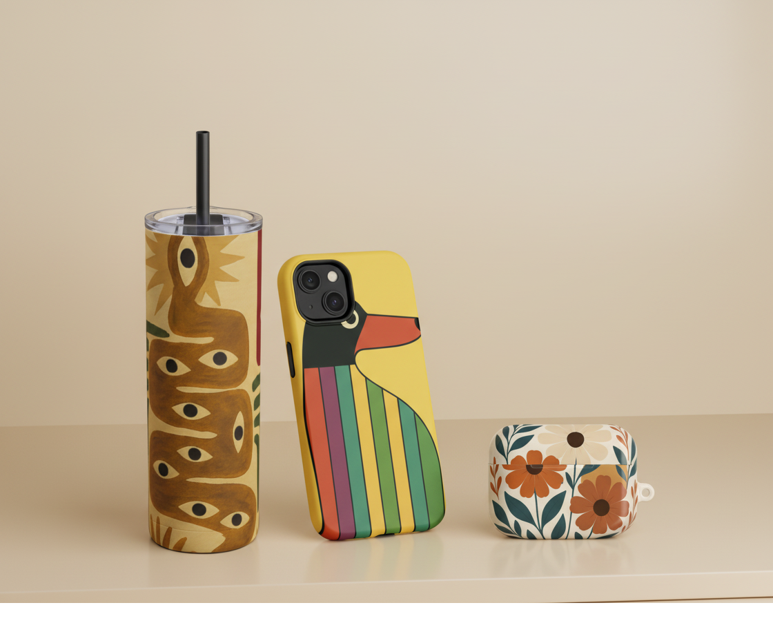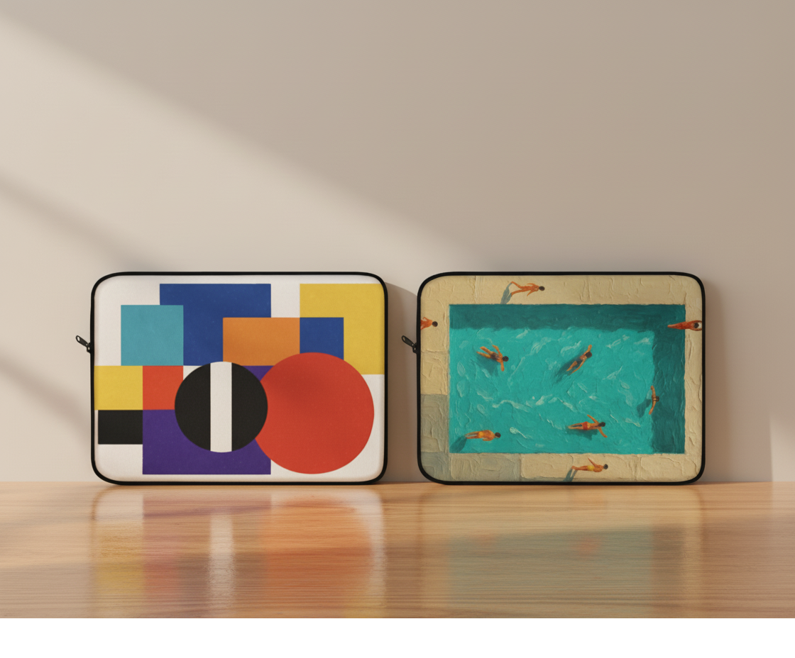 Protective, padded, and print-perfect. Each sleeve features exclusive artwork from our studio—smooth zips, soft lining, premium finish. Pair yours with a matching case or tote.