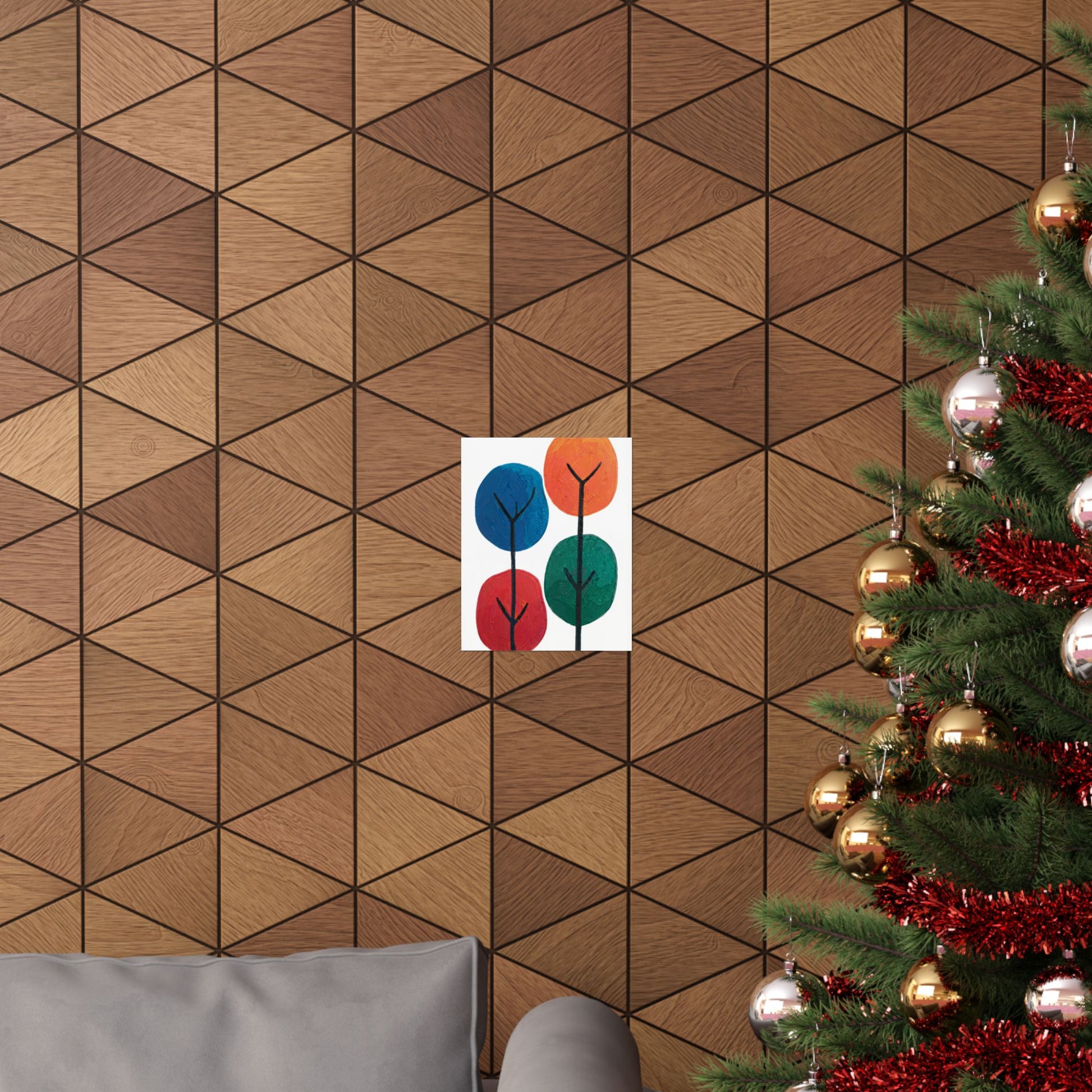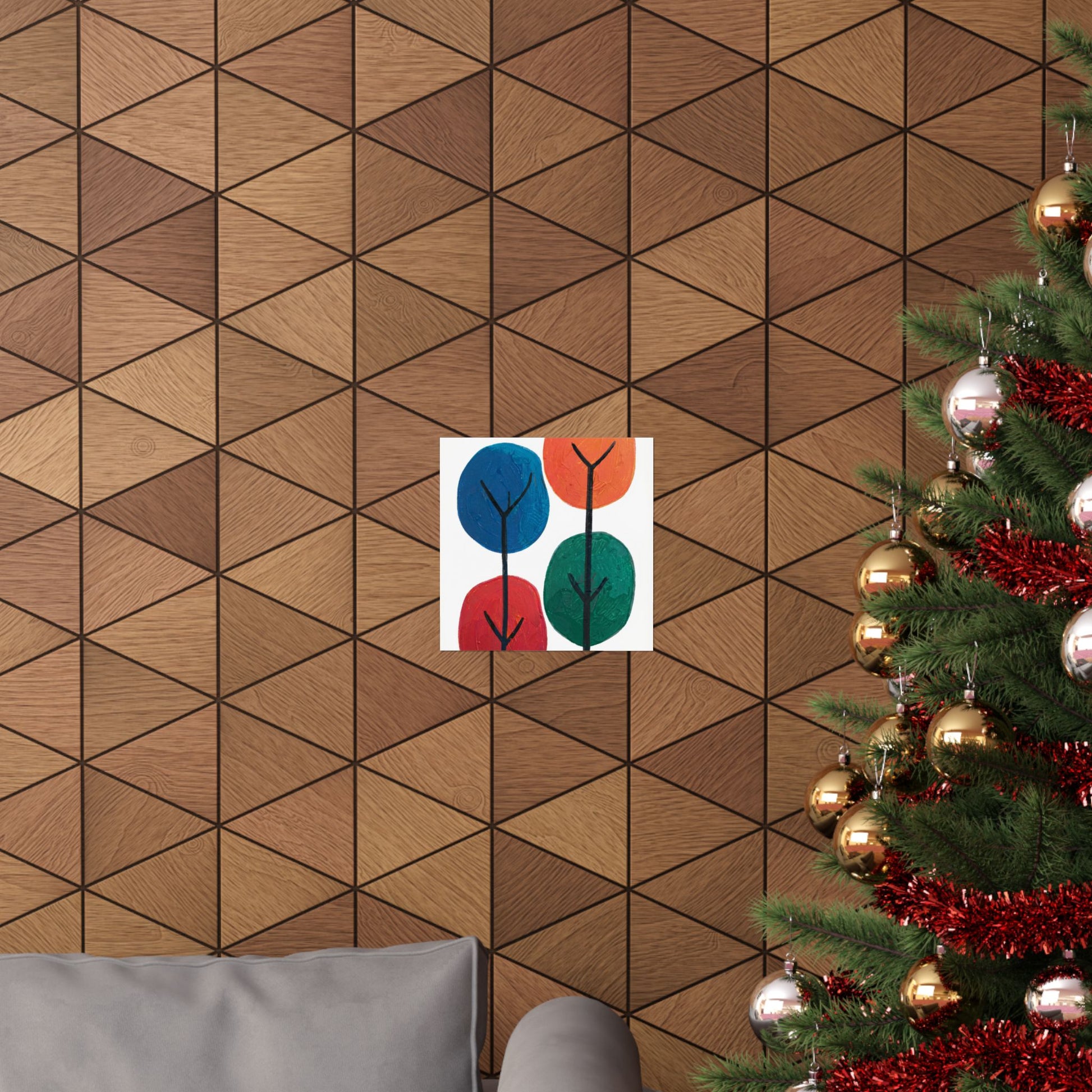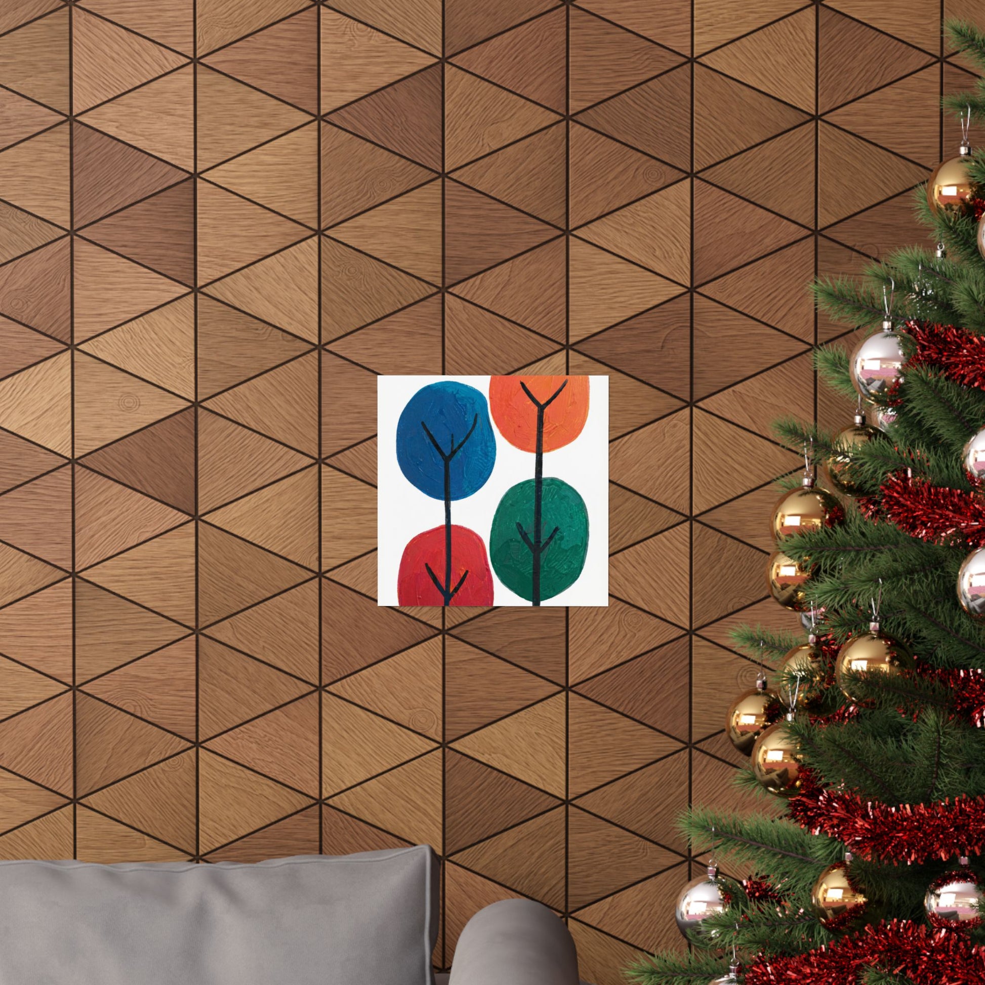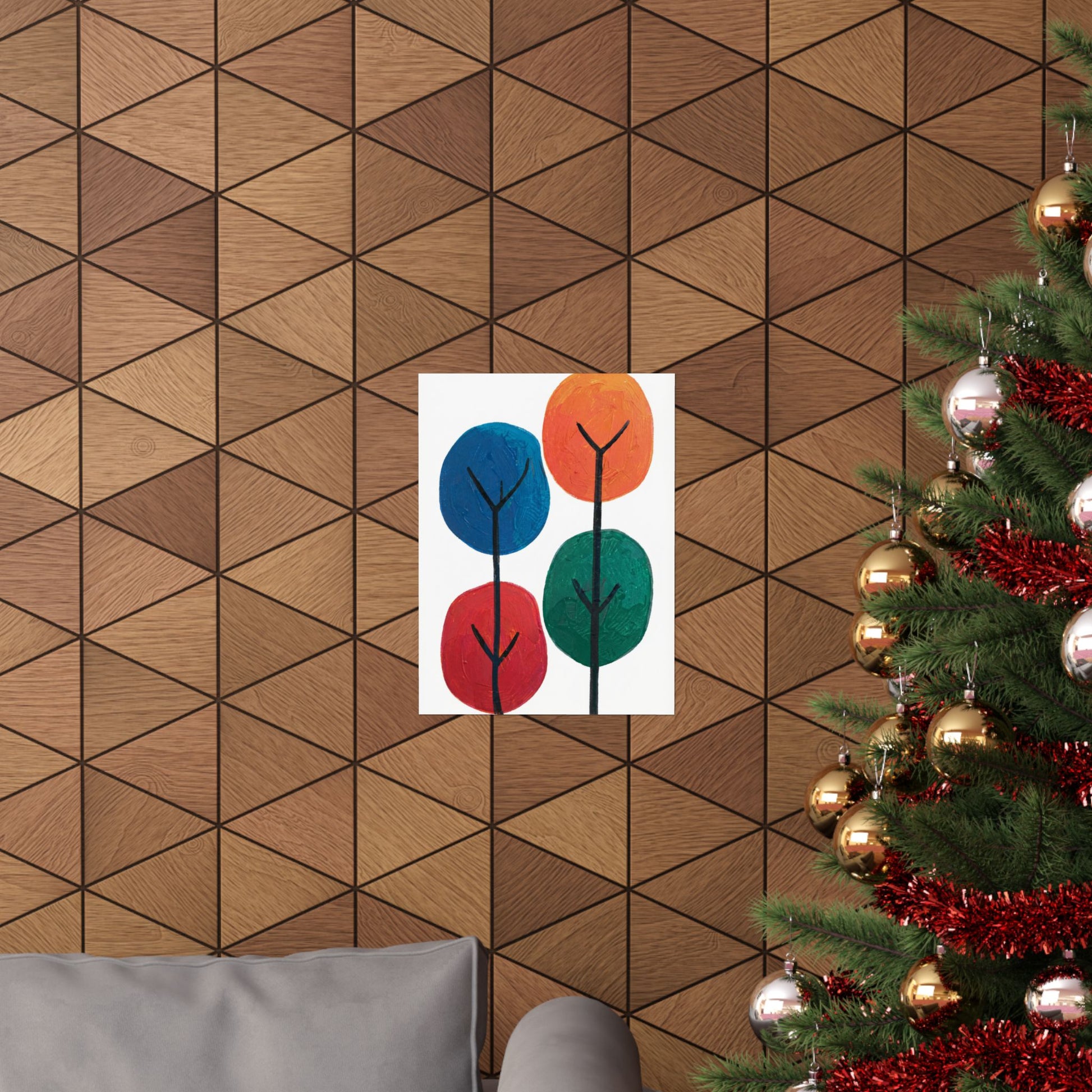 Colour Grove features four stylised painted trees in blue, orange, red, and teal, each rendered with bold, textured brushstrokes that suggest human artistry rather than machine precision. The composition is deliberately intimate—a small grove rather than a forest—set against a clean white background that gives each colour room to breathe. What makes Colour Grove work is the balance it holds: warm and cool colours coexist without conflict, playfulness meets groundedness, and the painted texture invites closer inspection. This is design that doesn't shout, but shows up everywhere you want it to. A art poster in Colour Grove becomes a focal point—not because it's loud, but because it's considered. The four trees sit in perfect balance, inviting conversation without demanding it. This is art that respects your space.