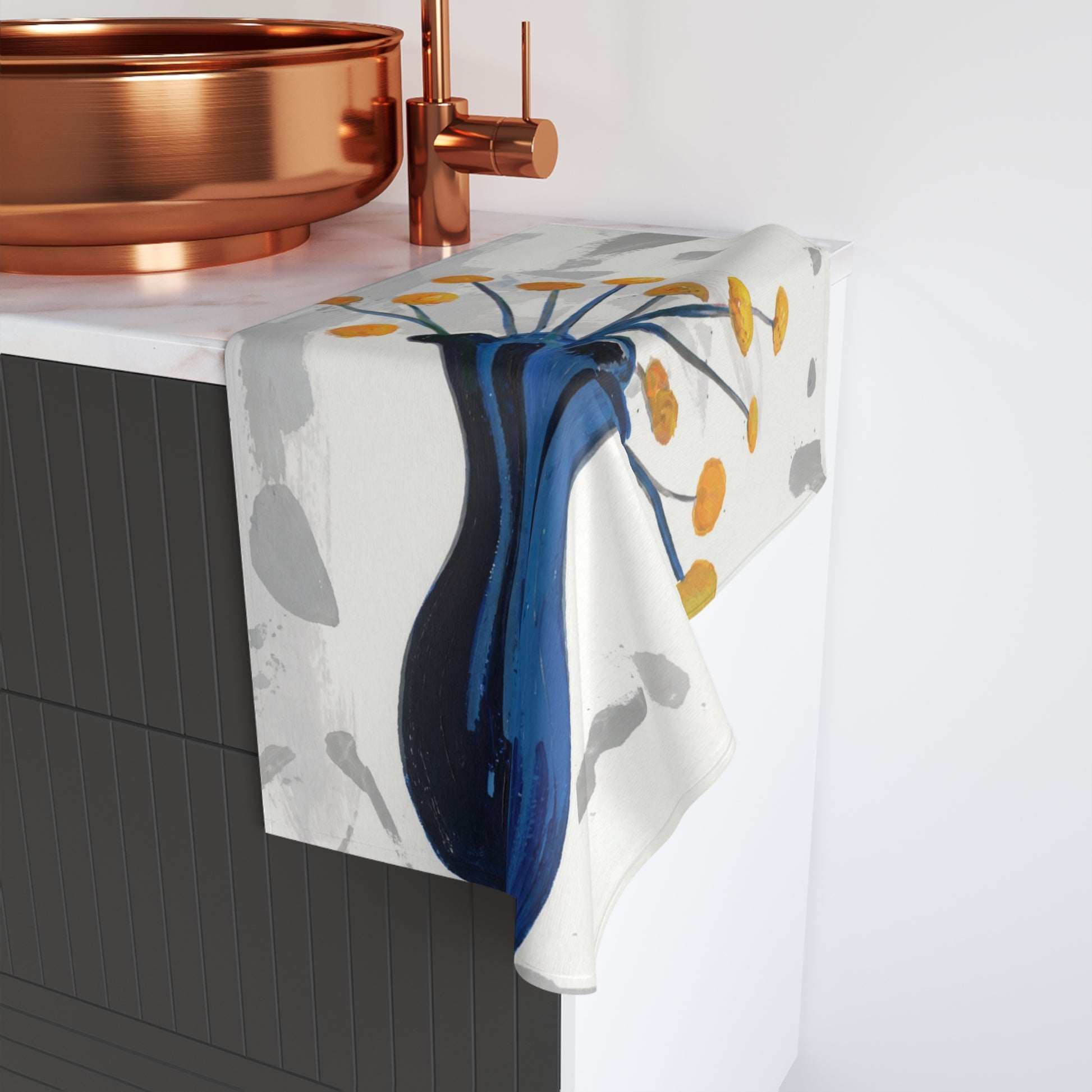 Everyday moments become art when this hand towel, featuring the Blue Vase design, dries your hands.