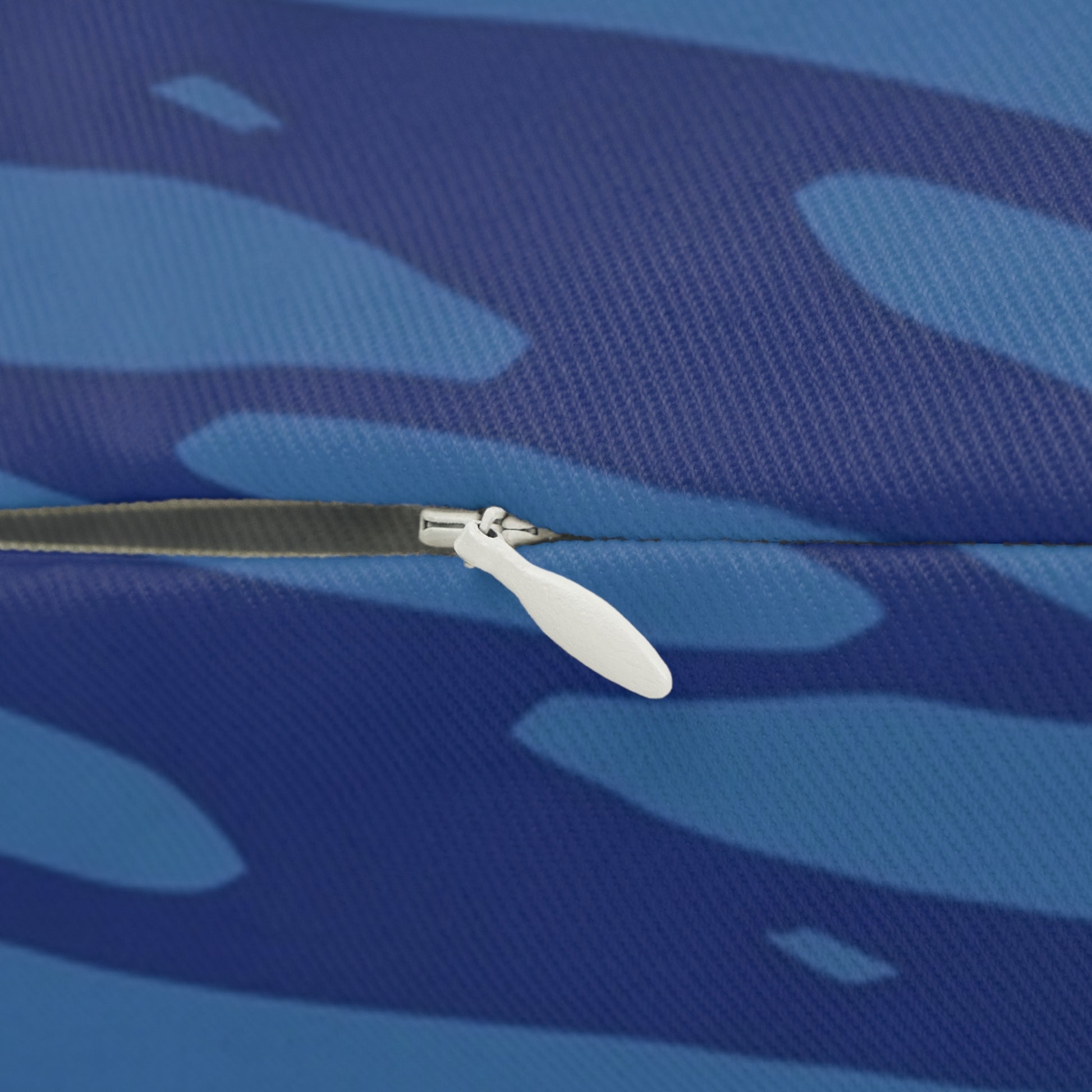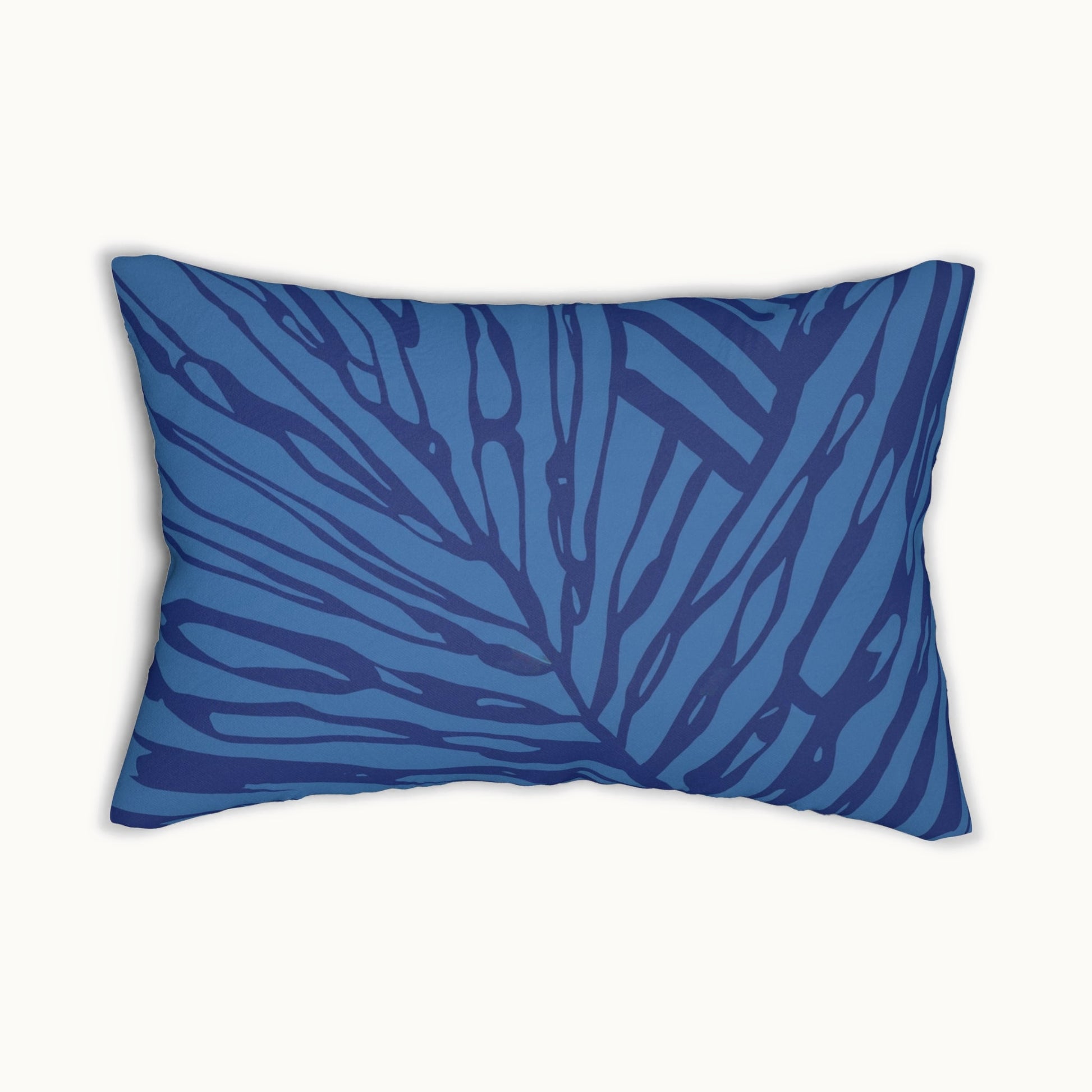 The Blue Frond design becomes your pillow—art that surrounds you in quiet moments.