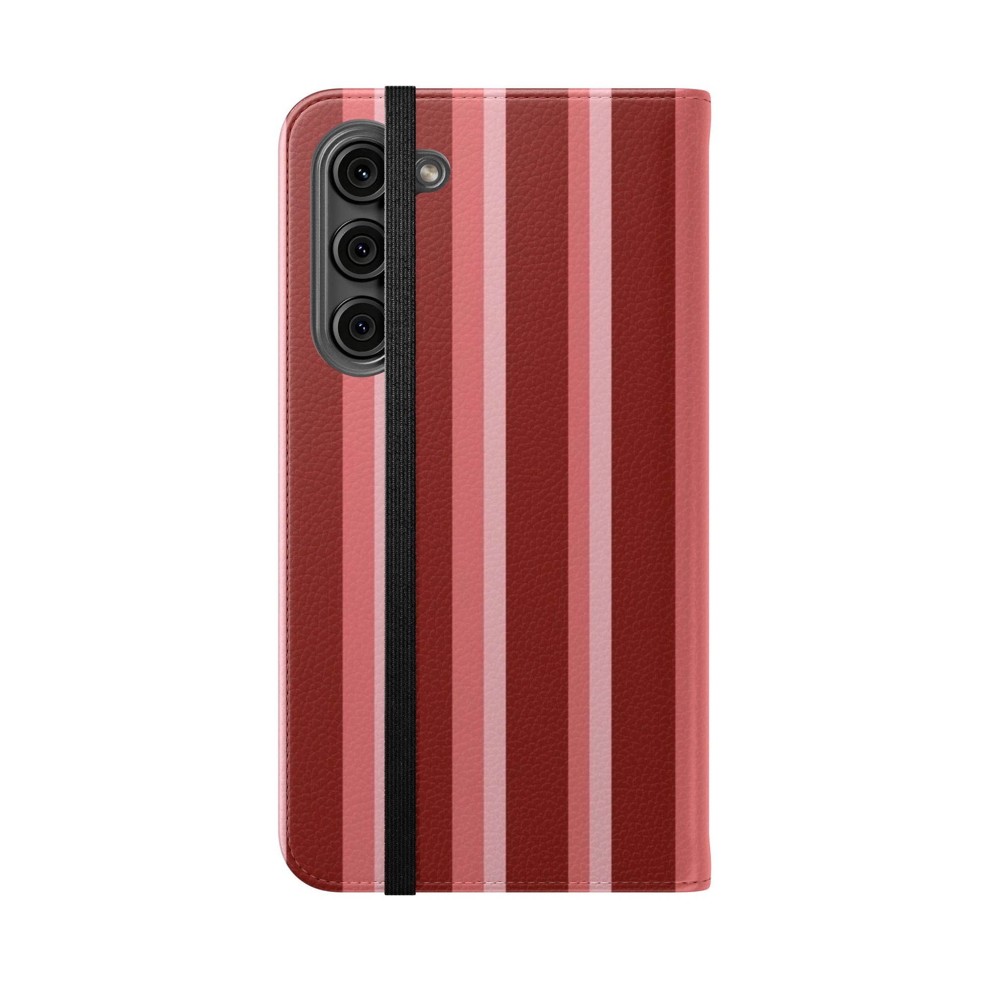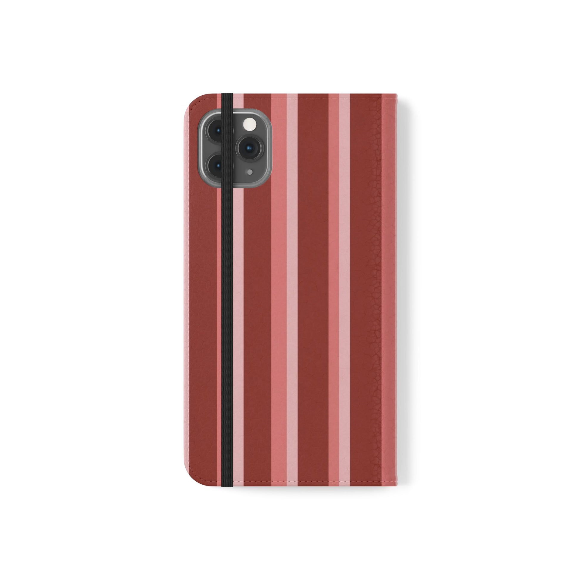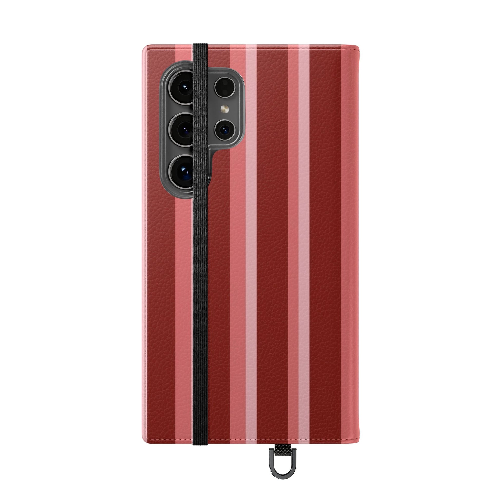 The Crimson Line design sits at your fingertips on this leather flip case—art for your pocket.