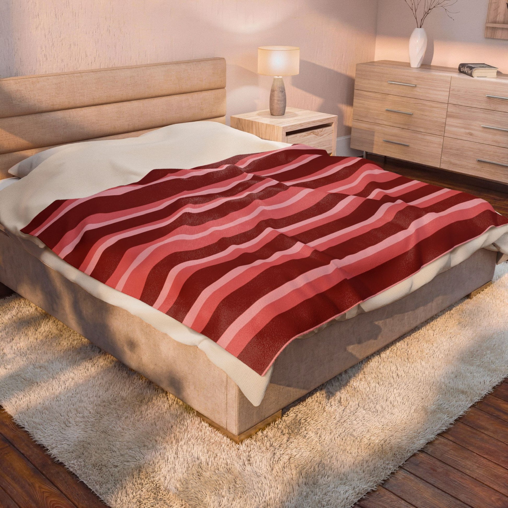 Wrapped in the Crimson Line design, this plush blanket becomes a visual anchor on any couch or bed.